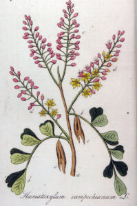 Dalla sua corteccia viene estratto un colorante largamente impiegato in passato su tessuti e carta ed oggi in istologia, chiamato Ematossilina, una sostanza capace di colorare solo quando, tramite ossidazione, si trasforma in emateina. Il suo nome scientifico è Haematoxylum campechianum e richiama proprio la capacità tintoria di questa pianta: in greco haima, -atos significa sangue e xylon legno, quindi “legno di sangue”.