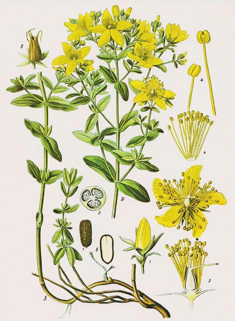 Pianta officinale perenne semi-sempreverde dai fiori giallo oro a stella con vistosi stami gialli. Predilige boschi radi e luminosi, posizioni soleggiate o semi ombreggiate e asciutte come campi abbandonati o ambienti ruderali.